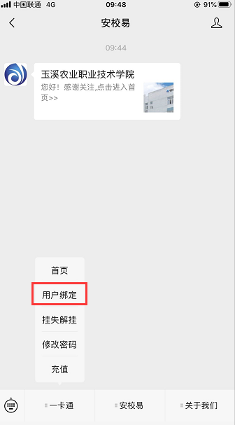 3、点最下面的“一卡通”菜单,选用户绑定。