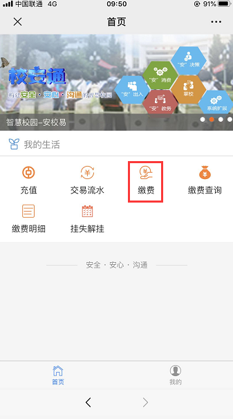 学生绑定成功后,可以通过“缴费”进行学费、住宿费、书费等费用的缴纳。