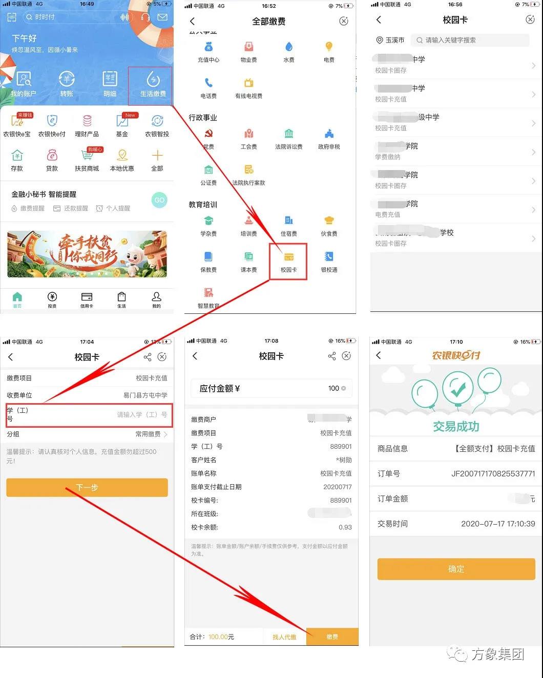 需求:使用方象智慧银校一卡通平台系统,学生家长使用 中国农业掌银APP 实现日常充值\消费查询;三钱包\复杂补助\智能识别消费\复杂报表等功能,解决补贴\消费数据实时同步\学校师生考勤、学生出入信息管理\信息自动推送家长微信\,帮助学校解决学、食、行管理难题。